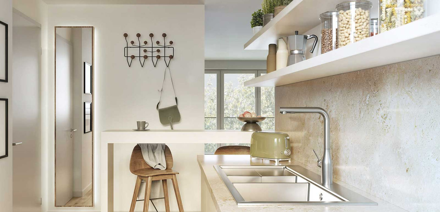 Die 1-Zimmer-Apartments „RIVA“ und „GARDA“ zeigen, dass auch mit wenig Raum ein Zuhause mit viel Flair geschaffen werden kann. Der großzügige Schlaf- und Wohnraum ist von der Küche geschmackvoll separiert. Der angeschlossene Balkon erweitert nicht nur optisch die Wohnfläche nach außen und bietet einen unverbauten Blick auf die Gartenanlage. Im Erdgeschoß verfügen auch hier die Wohnungen über Terrassen mit Austritt in den Privatgarten.